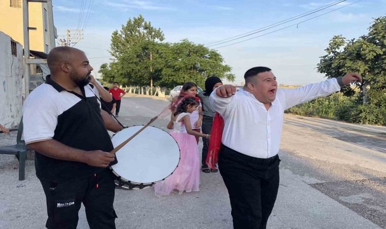 Adana’da 23 yaşındaki down sendromlu Ramazan için davul zurna eşliğinde temsili asker uğurlaması gerçekleştirildi. Uğurlamada annesiyle karşılıklı oynayan Ramazan’ın mutluluğu ise gözlerinden okundu.
