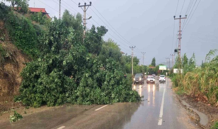 Adana’nın Kozan ilçesinde aşırı yağış ve fırtına nedeniyle ağaç yola devrildi.