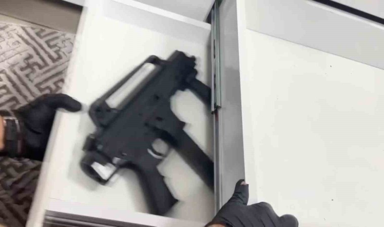 Evde arama çalışması yapan polis, ruhsatsız tabanca, 85 mermi, 11 pakette toplam 9.15 gram bonzai, 2 adet çalıntı plaka, 3 adet uçaksavar mermi çekirdeği, 4 adet maske ile gardıroba yapılan zulada hafif makineli tüfek ele geçirdi.