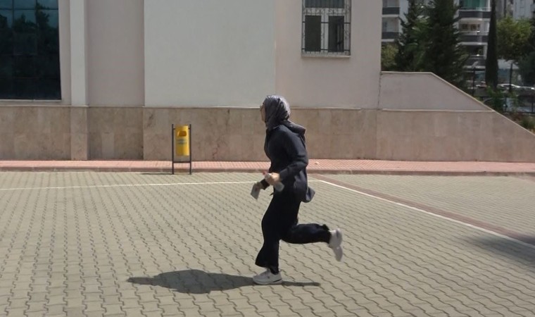 Adana’da Kamu Personel Seçme Sınavı (KPSS) için kapıların kapanmasına saniyeler kala genç kız sınava koşarak son anda yetişti.