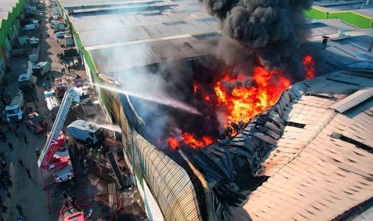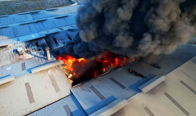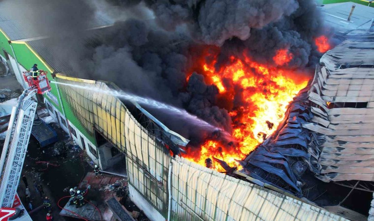 Yoğun alev ve dumanların çıktığı yangına ekiplerin müdahalesi sürüyor.