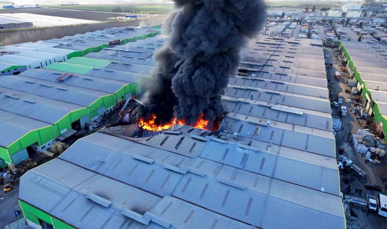 Adana’da geri dönüşüm fabrikasında çıkan yangın havadan görüntülendi. Dron ile yoğun duman ve alevler görüntülenirken itfaiye ekiplerinin yangına müdahalesi sürüyor.