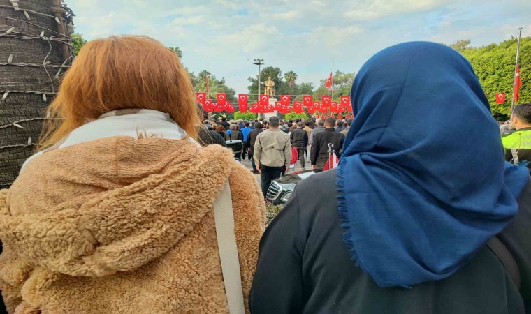 Atatürk’ün 86. ölüm yıl dönümünde Adanalı yüzlerce vatandaş Atatürk Parkı’ndaki Atatürk anıtı önünde toplandı. Kimi Atatürk fotoğraflı kravatını takıp, kimi ise Atatürk fotoğraflı tişörtünü giyerek alana geldi.