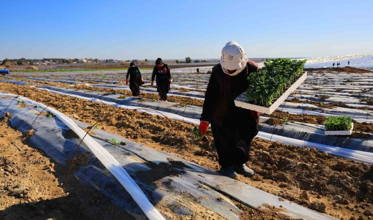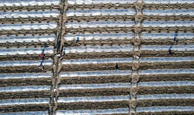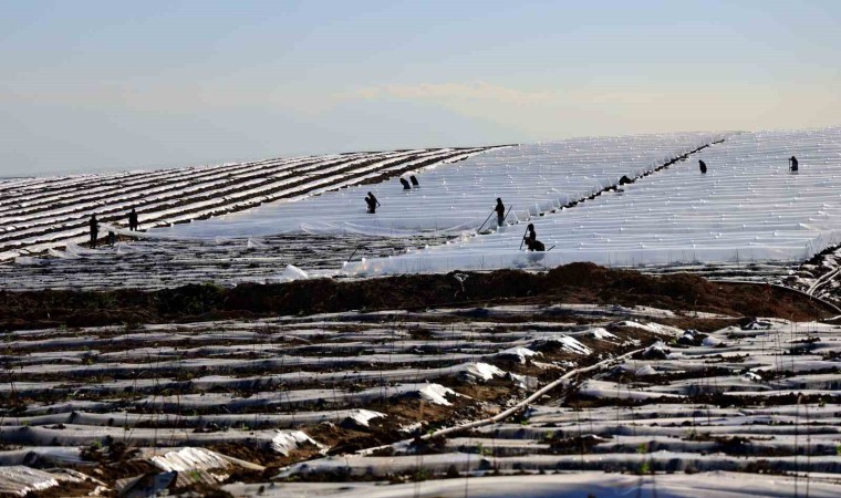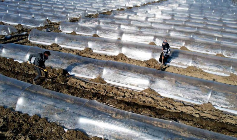 İşçilerin bazıları toprağı düzeltirken, bazıları fide çukurlarına gübre yerleştirdiği toprağı, fide ekimine hazır hale getirdi. Binbir emekle fideler toprakla buluşurken soğuktan korumak için üstlerini naylonla kapattı.