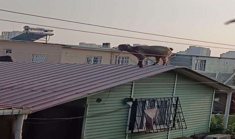 ADANA’DA KURBAN BAYRAMIN HAZIRLIKLARI SIRASINDA BİR KEÇİNİN ÇATIYA TIRMANIP KAÇMASI KOMİK GÖRÜNTÜLERE SAHNE OLDU.