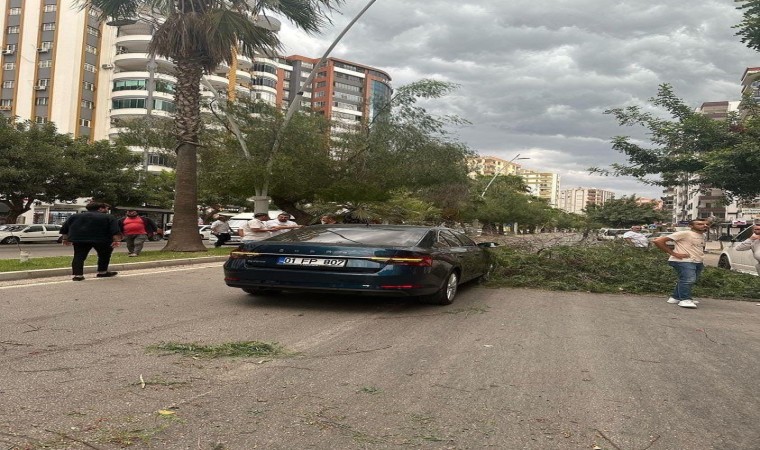 Meteoroloji 6. Bölge Müdürlüğü’nün yaptığı uyarının ardından Adana’da sağanak yağış ve rüzgar etkili oldu. Şiddetli rüzgar nedeniyle bir ağaç otomobilin üzerine devrildi.