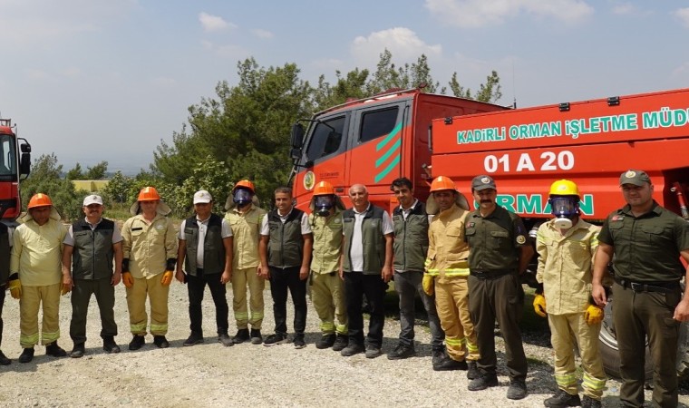 Adana Orman Bölge Müdürü Tahsin Etli, ormancılık faaliyetlerini sürdüren Kadirli Orman İşletme Bölge Müdürlüğü ekiplerinin çalışmalarını yerinde inceledi. Daha sonra yangın tatbikatı gerçekleştirildi.