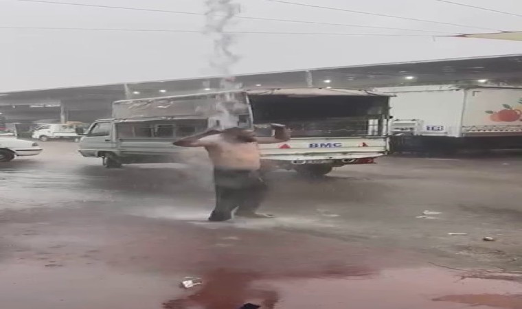 Öte yandan Adana Vedat Dalokay Hal Kompleksi’nde bir tarım işçisi yağmur altında yıkanıp dans etti. O anlar cep telefonu kamerasına saniye saniye yansıdı.