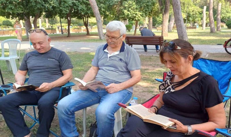 Atatürk Parkı’nda kamp sandalyesini, çayını, kahvesini ve kitabını alıp bir araya gelen vatandaşlar, teknolojinin yanlış kullanımına ve bağımlılığıa dikkat çekmek için kitap okuma etkinliği gerçekleştirdi.