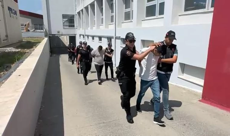 Emniyetteki işlemlerinin ardından sevk edildikleri adliyede mahkemeye çıkarılan şüphelilerden 4’ü tutuklandı, Cavit G. ise adli kontrolle serbest bırakıldı. (DHA)