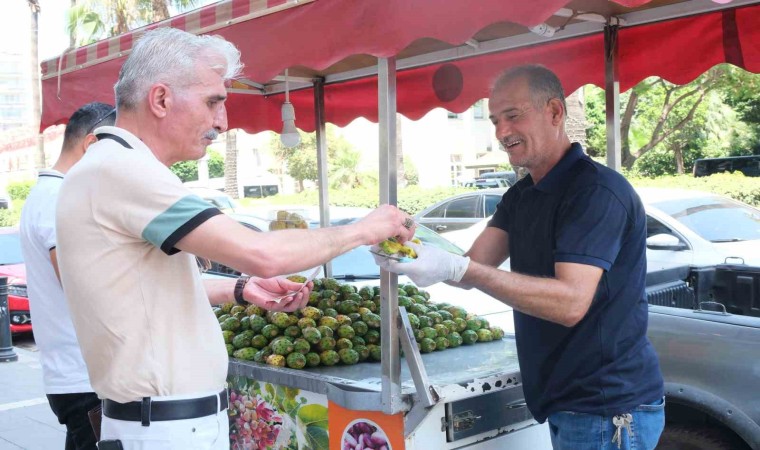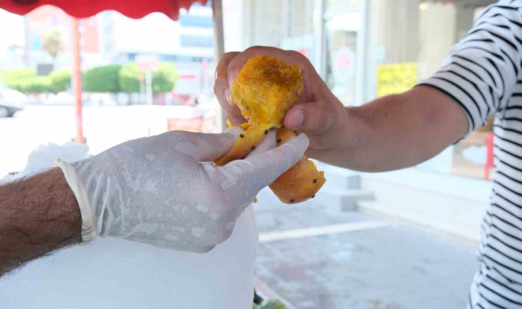 Üzerindeki dikenli kabuk tabakası temizlenerek seyyar tezgahlarda buz kalıpları arasında soğutularak satılan organik dikenli incir, sıcak havanın hakim olduğu kentte serinlemeye çalışan kişilerce büyük bir keyifle tüketiliyor.