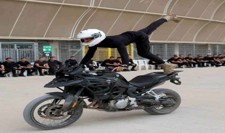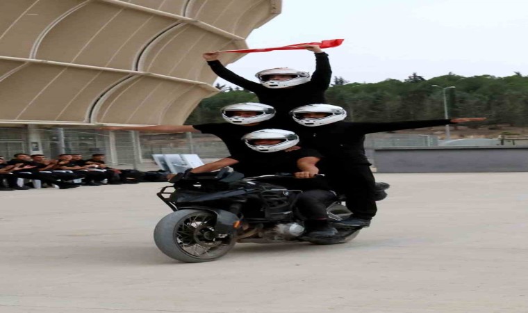 Adana’da özel seçilen polis memurları, Motosikletli Yunus Timinde görev almak için gördükleri eğitimin ardından, nefes kesen gösteri yaptı.