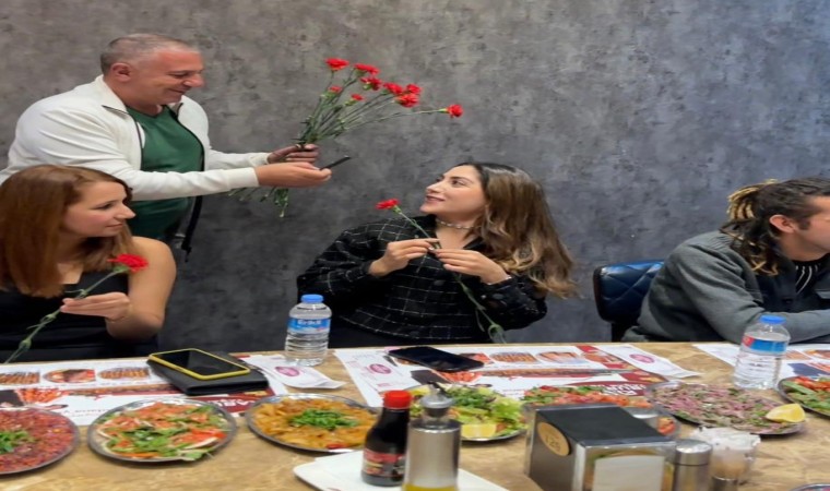 Adana’da kebapçılık yapan Yaşar Aydın, öğretmenleri unutmayarak gül dağıttı.