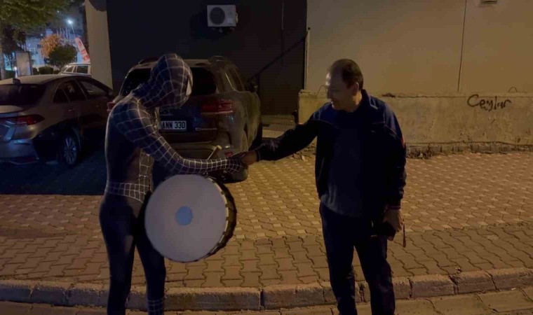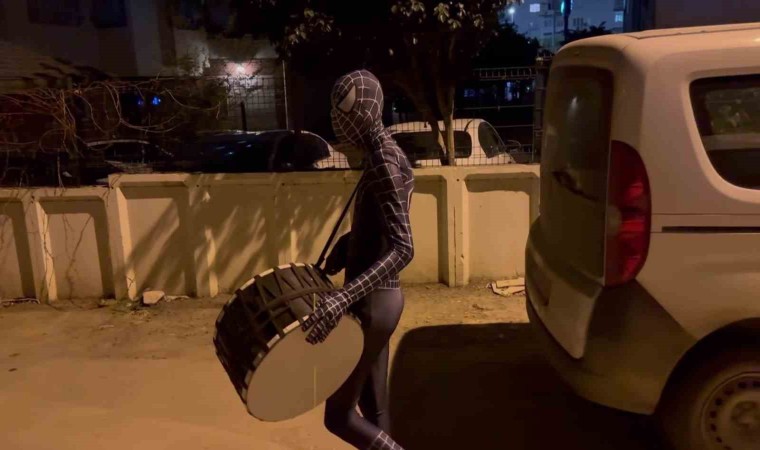 Adana’da ’Örümcek Adam’ kostümü giyen bir kişi davul çalarak sahurda vatandaşları kaldırdı. Sahurda davul sesine uyanıp Örümcek Adam’ı gören vatandaşlar şaşkınlık yaşadı.