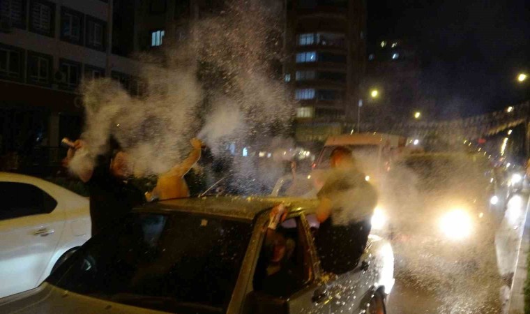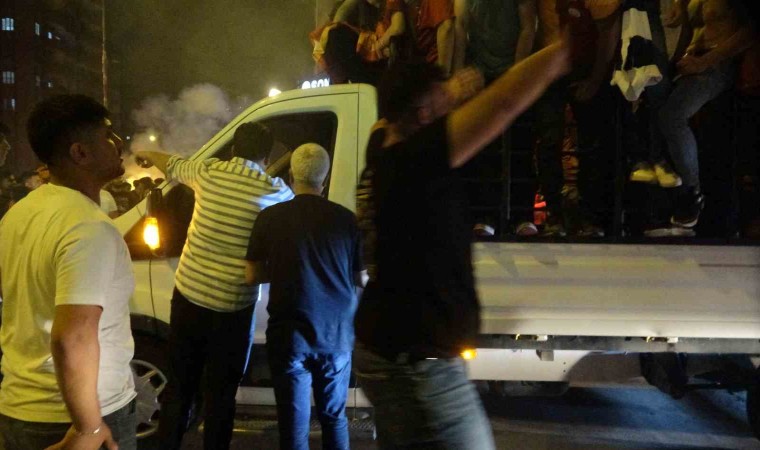 Otomobil ve kamyon üzerindeki tehlikeli kutlamalara polisler müdahale ederken, kentin farklı noktalarında taraftarların kutlamaları sürüyor.