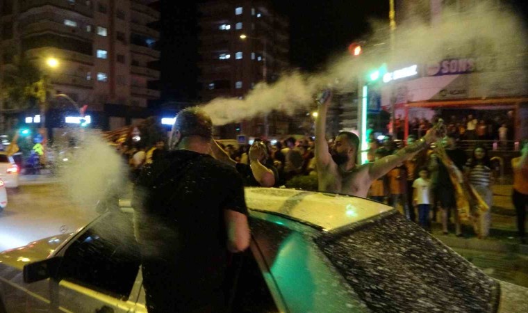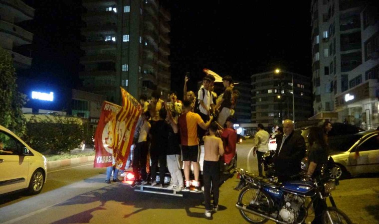 Galatasaray’ın şampiyon olmasının ardından Adana’nın Kozan ilçesinde sokağa çıkan taraftarlar, araçların üzerinde şampiyonluk sevinci yaşadı.