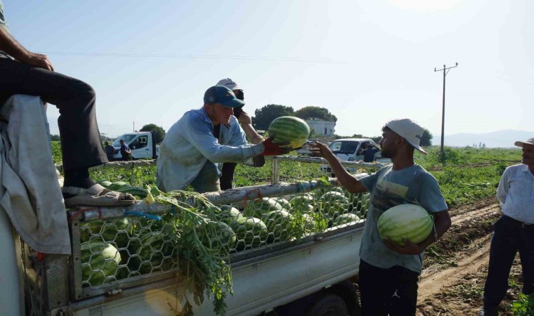 Çukurova’dan sonra en büyük karpuz bölgesi olan Aydın’da, sabahın erken saatlerinde karpuz hasadı telaşı yaşanırken, aşırı sıcaklar sebebiyle Adana karpuzunun yanması Aydın karpuzuna olan talebi artırdı.