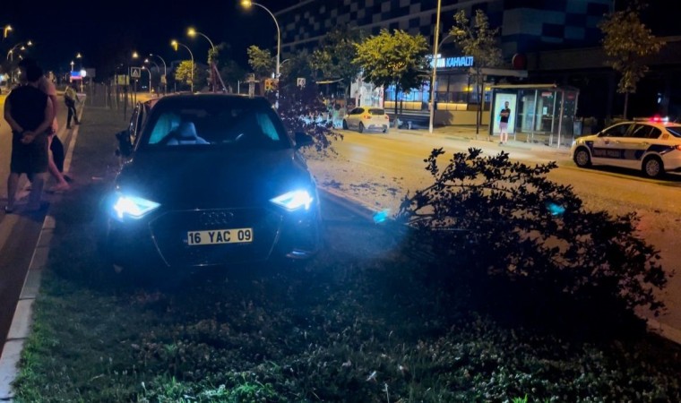 Kaza, merkez Nilüfer ilçesi Özlüce Bulvarı üzerinde meydana geldi. Aday sürücü olduğu öğrenilen Yiğit Alp I. (19) 16 YAC 09 plakalı otomobili ile seyir halindeyken, cadde üzerine gaza yüklendi. Sürücünün kontrolünden çıkan otomobil refüje daldı. Araç reklam panosunu devirdikten sonra ağaçlara vurarak durabildi. Kazayı gören çevredekiler, hemen 112 ekiplerine bilgi verdi. İhbar üzerine olay yerine sağlık ve polis sevk edildi. Şans eseri kazayı hafif sıyrıklarla atlatan sürücüye sağlık ekipleri kontrol amaçlı müdahale ederken, polis kazayla ilgili tahkikat başlattı.