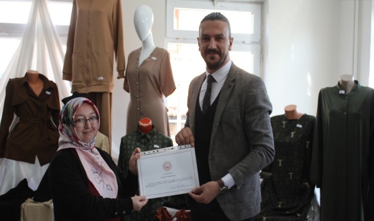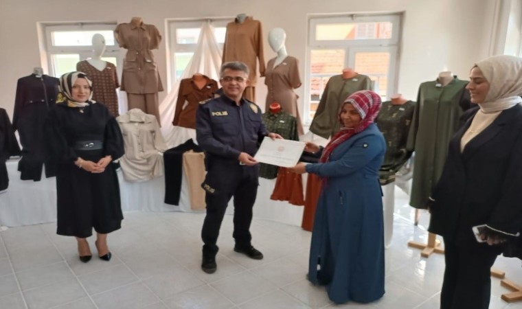 Kursiyerler sertifikalarını protokol mensuplarının elinden aldı.