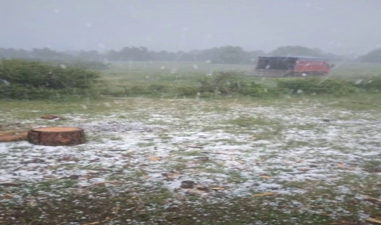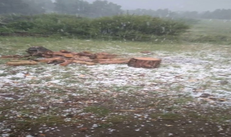 Sivas’ın Gemerek ilçesinde etkili şiddetli dolu yağışı cep telefonu kamerasına yansıdı.