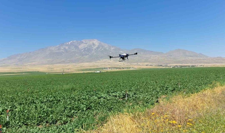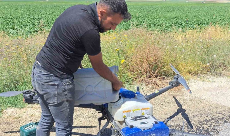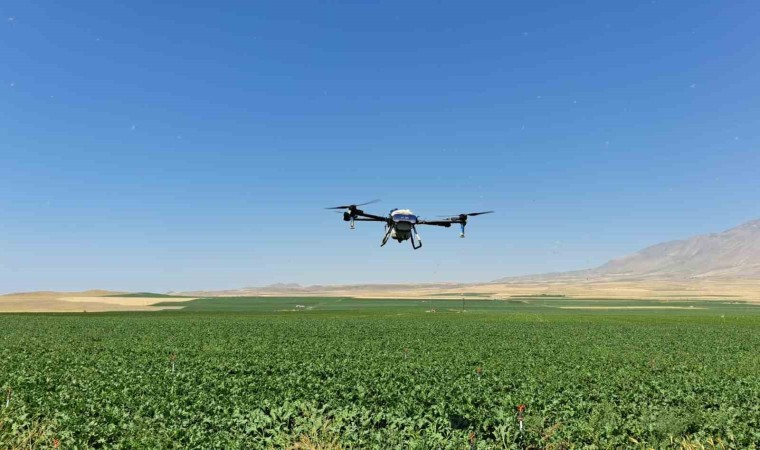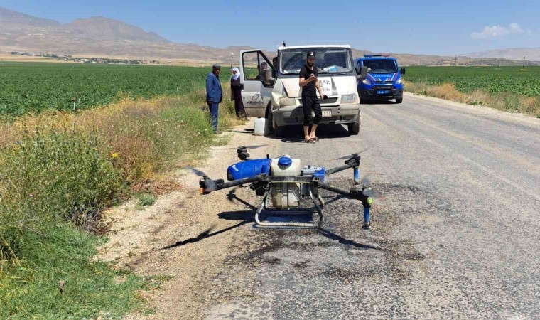 Bitlis’in Adilcevaz ilçesinde sulu tarımla uğraşan çiftçiler, dronla ilaçlamada yaparak tasarruf yapıyor.