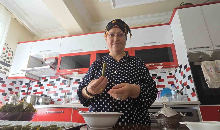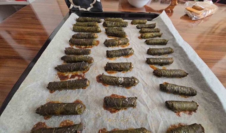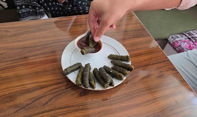 Tokatlı ev hanımı Havva Çiftçier, üzüm yaprağından yaptığı ve erik marmelatıyla sunduğu tatlıyla yaprak sarmasına farklı bir boyut kazandırdı.