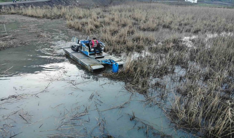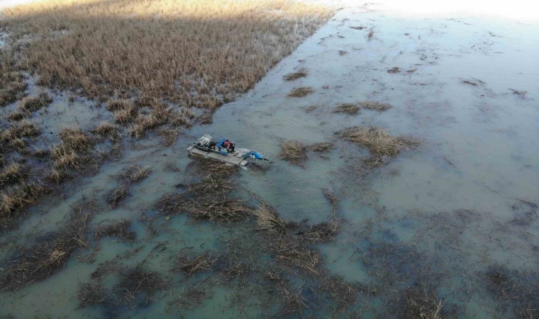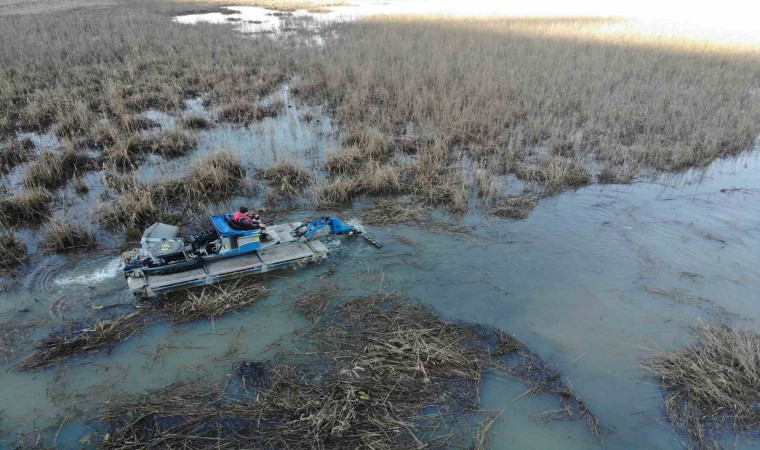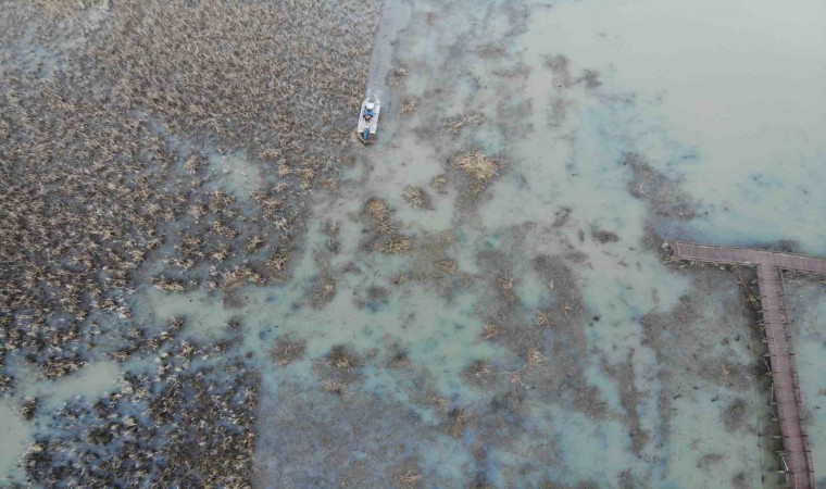İskele etrafında sınırlı bir alanda göl yüzeyini kaplayan sazlık ve diğer sucul bitkilerin kontrollü bir şekilde temizlenme çalışmalarının bir ay boyunca devam etmesi planlanıyor.