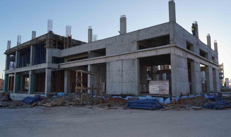 Adıyaman Belediyesi’nin 6 Şubat depremlerinde yıkılan hizmet binasının inşası devam ediyor.