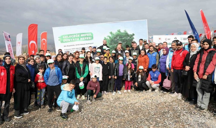 Adıyaman’da, ‘Geleceğe Nefes, İnsanlığa Nefes’ sloganıyla fidan dikimi etkinliği yapılırken, 11 bin fidan toprakla buluştu.