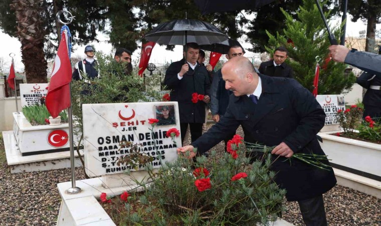 Saygı duruşu ve İstiklal Marşının okunması sonrası Kur’an-ı Kerim tilaveti okunarak dualar edildi. Adıyaman Askerlik Şube Başkanı Binbaşı Serkan Güvel’in günün anlam ve önemine binaen yaptığı konuşmaların ardından saygı atışı yapıldı. Şehitlik defterinin Vali Osman Varol tarafından imzalanması sonrası şehitlerin kabirlerine karanfil bırakıldı.
