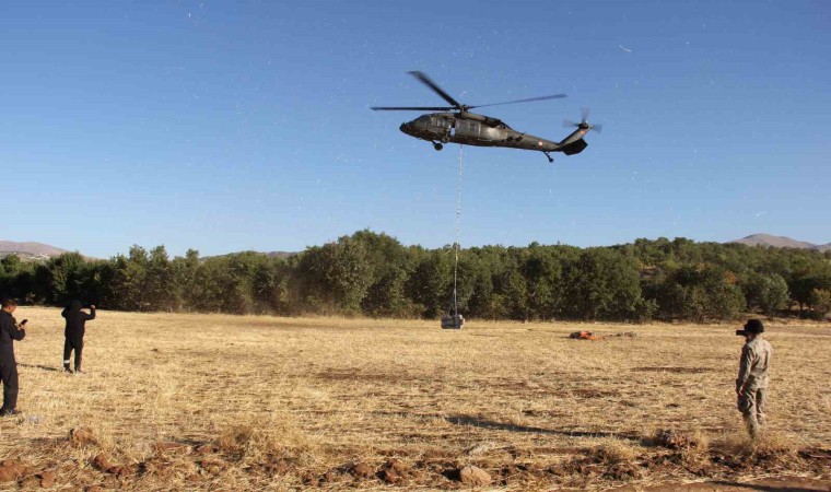 Jandarma Genel Komutanlığı’na ait helikopter, 1650 metre rakımlı Kımıl Dağı’ndan Kommagene Uygarlığına ait 2100 yıllık tarihi eserleri taşıdı.