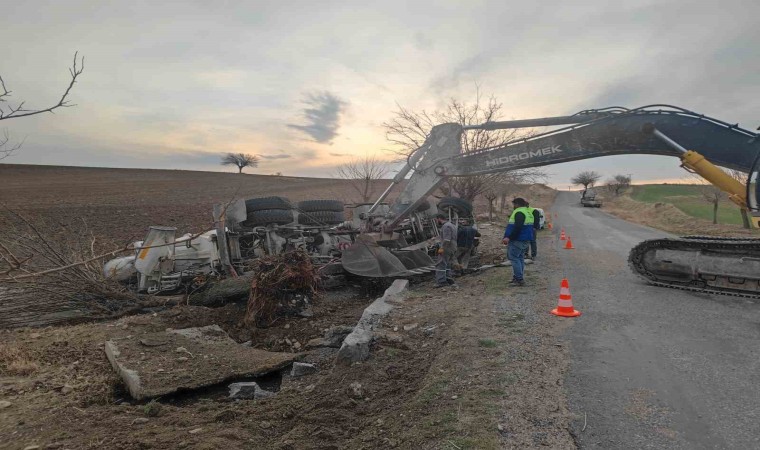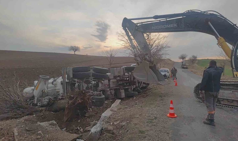 Adıyaman’da, sürücüsünün direksiyon hakimiyetini kaybettiği beton mikseri devrildi.