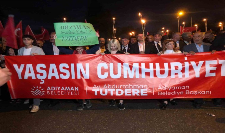 Cumhuriyetin ilanının 101. yılında ülkenin dört bir yanında yaşanan bayram havasıyla vatandaşlar Cumhuriyeti kutlarken, Adıyaman’da, düzenlenen etkinlikler de büyük bir ilgi ve coşkuyla gerçekleştiriliyor. Adıyaman Belediyesi’nin 29 Ekim Cumhuriyet Bayramı etkinlikleri kapsamında Cumhuriyet Yürüyüşünde açılan Türk bayrakları ve yakılan meşaleler eşliğinde gerçekleştirildi. 7’den 77’ye her yaştan vatandaşın elinde bayrağıyla katıldığı kortej, renkli görüntülere sahne oldu. Motorcu gruplarının da yer aldığı kortej Gölbaşı Caddesi’nden başlayıp Demokrasi Parkı önünde sona erdi. Kortej yürüyüşünün ardından Demokrasi Parkı önünde düzenlenen Cumhuriyet Konseriyle vatandaşlar Cumhuriyetin 101.yılını kutladı.