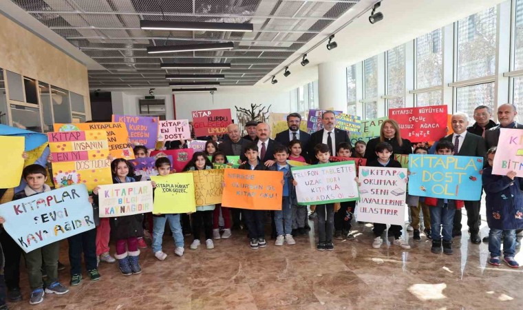 Kitapların ve okumanın önemine dikkat çekmek amacıyla ellerinde döviz taşıyan minik çocuklarla sohbet eden Vali Osman Varol, kütüphaneyi gezerek yeni sergilenen kitapları inceledi.