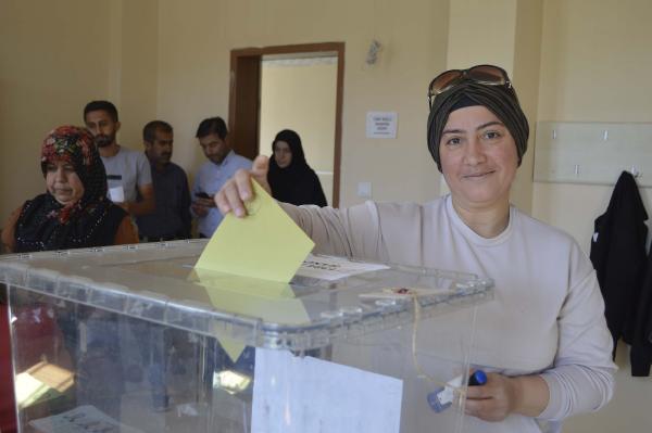 6 Şubat'ta meydana gelen depremlerin vurduğu Adıyaman'da, seçmenler sabah erken saatlerde oy kullanmak için okullara gitti. Seçmenler burada görevlilerden aldıkları oy pusulalarıyla kabinlere girerek tercihlerini yaptı. (DHA)