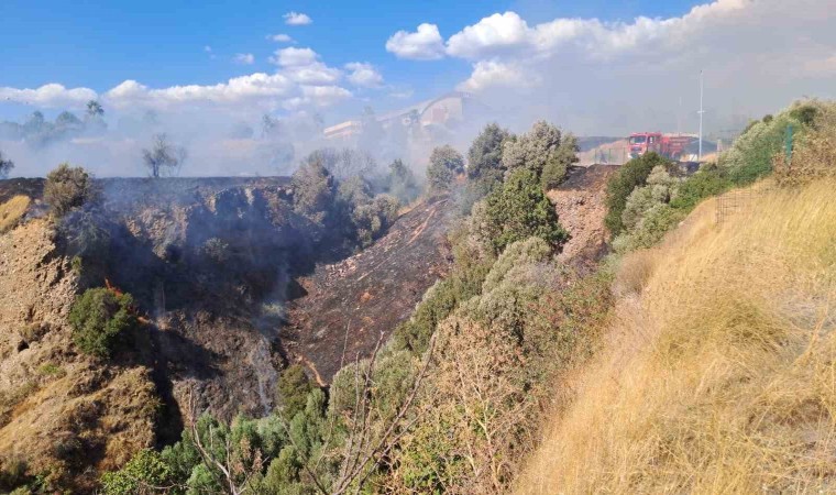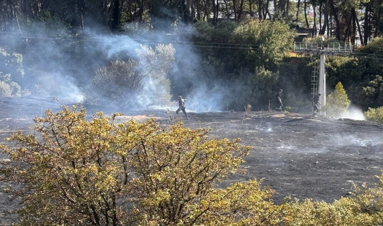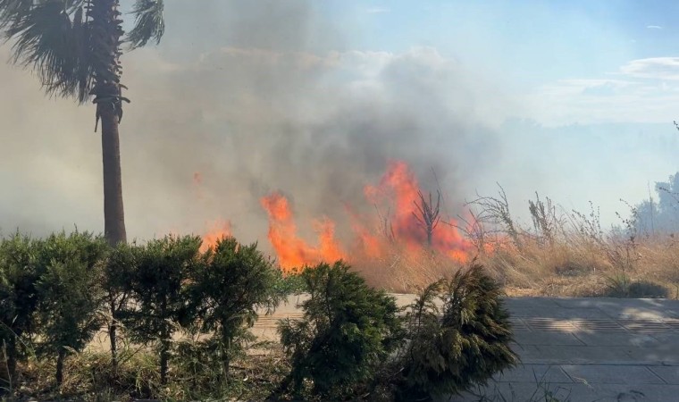Aydın Adnan Menderes Üniversitesi kampüs alanında tutuşan kuru otlar, paniğe sebep olurken, alevlerin çevredeki binalara sıçramaması için ekipler, yoğun çaba sarf etti.