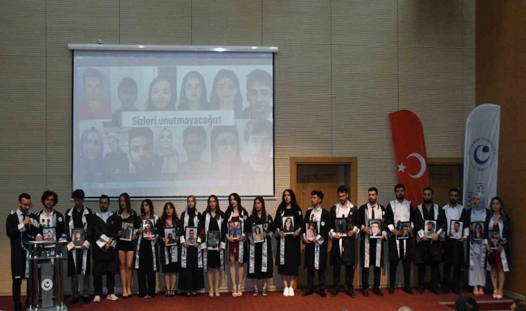 Tüm öğrencilerin katılımıyla gerçekleştirilen bir yemin töreni hayal ettiğini belirten Prof. Dr. Turgut, “6 Şubat felaketinden ötürü ne yazık ki aramızda olmayan kardeşlerimiz var. Bölgemizde 50 bin den fazla, ilimizde 8278 ve Üniversitemizde 31’i personelimiz olmak üzere toplamda 230 evladımızı kaybettik. Kendilerine Cenab-ı Allah’tan rahmet, ailelerine sabır ve baş sağlığı diliyorum. Acımız çok büyük. 199 evladımızı ebediyete uğurladık. Onları asla unutmayacağız ve isimlerini Üniversitemizde yaşatmaya gayret göstereceğiz. Bu anlamda vefat eden kardeşlerimiz için kampüs alanımız içerisinde bir hatıra ormanı oluşturduk. Bugün, burada hem kayıplarımızı anmak hem de mezun olan öğrencilerimize asrın felaketinden ötürü yapamadığımız mezuniyet töreni yerine, mesleğe ilk adımlarını atmak için yapılması zorunlu olan yemin törenini organize ettik. İnşallah ileriki yıllarda bu etkinliklerimizi sağlıkla yapacağız. Rabbim bu millete bir daha böyle felaketler göstermesin.” dedi.
