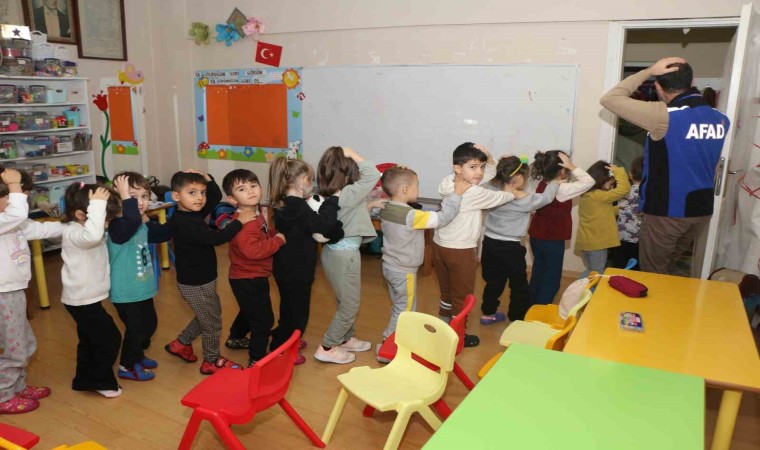 Sakarya AFAD ekipleri tarafından minik Kur’an Kursu öğrencilerine afet bilinci aşılanıyor. Miniklere verilen ‘Afet Farkındalık’ eğitiminde, afet öncesi-sırası-sonrasında doğru davranışlar, afet ve acil durum çantasının içeriği, çök-kapan-tutun prensibi ve tahliye tatbikatları detaylı bir şekilde anlatıldı.