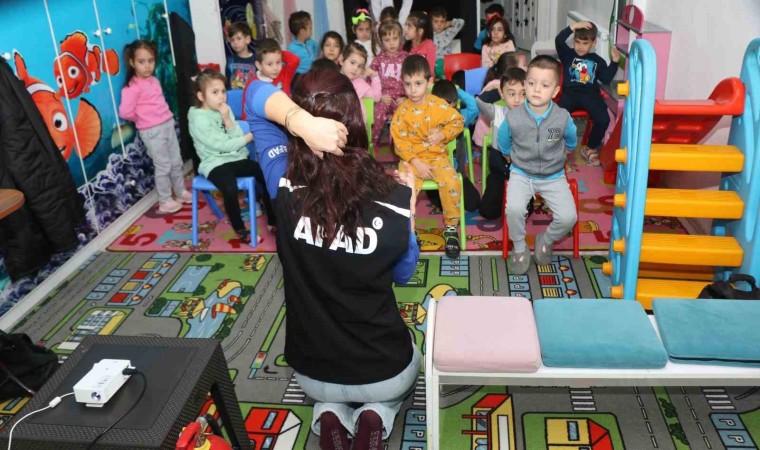 Sakarya İl Afet ve Acil Durum Müdürlüğü (AFAD) ekipleri, ihtimal dahilinde olan afetler için şehir genelinde eğitimlerini sürdürüyor. Bu çerçevede şehirdeki Kur’an Kursu öğrencilerine ‘Afet Farkındalık’ eğitimleri veriliyor. 4-6 yaş arası miniklere verilen eğitimlerde; afet öncesi-sırası-sonrasında doğru davranışlar, afet ve acil durum çantasının içeriği, çök-kapan-tutun prensibi ve tahliye tatbikatları detaylı bir şekilde anlatıldı. Ayrıca, afet ve acil durum çantası içeriği, yangın söndürme cihazları kullanımı gibi konularda bilinçlendirme yapıldı. Eğitimin sonunda, deprem tahliye tatbikatı da yapılarak miniklere afet bilinci aşılandı.