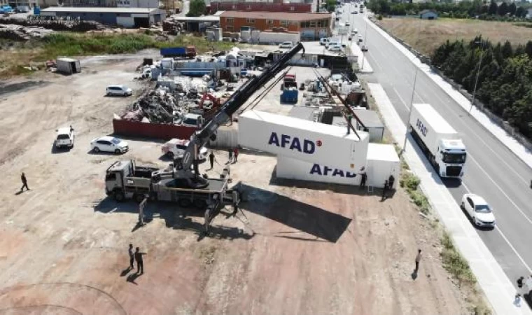 AFET ve Acil Durum Yönetimi Başkanlığı (AFAD), olası depremlere karşı yurt genelinde çalışmalarını sürdürürken, Silivri'de oluşturulan merkeze konteyner ve çadır depolamaya başladı. Olası Marmara depreminde vatandaşların barınma ihtiyaçlarını en hızlı şekilde gidermeyi amaçlayan merkeze TIR'larla getirilen konteynerler, vinçler yardımı ile yerleştirildi. Afet Koordinasyon Merkezi'nde iş makineleri aralıksız çalışırken, merkezdeki hazırlıklar havadan görüntülendi.