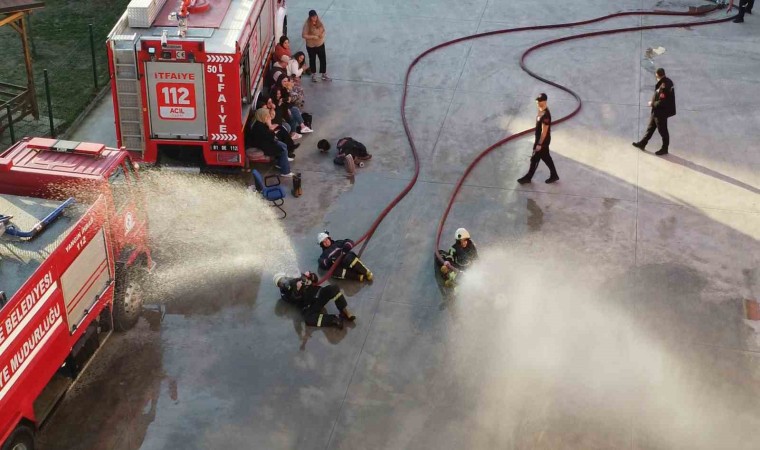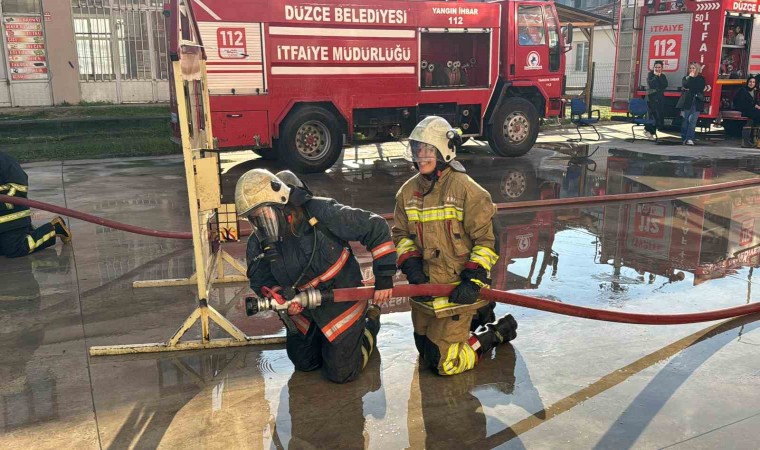 Düzce Üniversitesi öğrencileri tarafından başlatılan "Doğal Hayatta Doğal Afetlere Hazırlanıyorum Projesi" kapsamında öğrenciler ilk eğitimlerini tamamladı. İtfaiye personelleri öğrencilere yangına müdahale konusunda hem teorik hem de uygulamaları eğitim verdi.