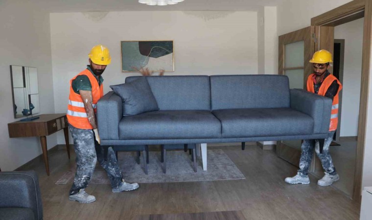 Adana’da yapımı devam eden deprem konutlarında sona doğru yaklaşılırken, örnek dairelere eşyalar da gelmeye başladı. Dairelerin geniş ve konforlu olduğu görüldü.