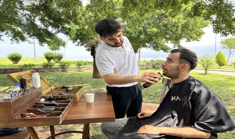 Dörtyol ilçesinden İskenderun’a gelen Engelliyim Engel Tanımam Derneği’nde bulunan özel bireylerin çimenlik alanda saç, sakal ve bakımlarını yapan Çelebi, "Yapmış olduğumuz projeyle ilgili öncelikle bize bu fırsatı tanıyan herkese çok teşekkür ederiz. Burada özel bireylerin saçlarını kestik, bizim için çok güzel bir mola oldu. Yani çalışmak gibi değil, bizim için bir molaydı. Biz de onlarla beraber güldük eğlendik, güzel bir aktivite oldu. Hatay Dörtyol’dan İskenderun’a geldik burada deniz kenarında çimlerin üzerinde çok güzel bir ortamda saç kesimlerini gerçekleştirdik" ifadelerini kullandı.