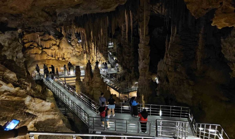 Türkiye’nin sayılı damlataşı mağaralarından birisi olan, sarkıt, dikit ve diğer oluşumlarıyla görenleri kendine hayran bırakan ve giriş ücretlerinde emeklilere özel indirimin de yapıldığı Karaca Mağarası’nda turizm sezonu devam ediyor.