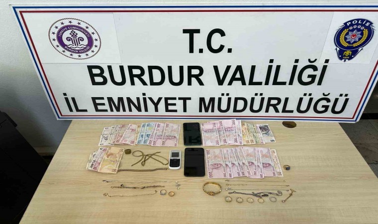 Burdur İl Emniyet Müdürlüğü ekipleri, Afyonkarahisar ve Isparta’da evlerden hırsızlık yapan şüphelilerin otomobille Burdur’a geldiğini tespit etti. Yapılan fiziki takip neticesinde otomobil sanayi sitesi içerisinde içindeki 4 şahısla birlikte durduruldu. Polisi görünce şahıslar otomobilin camından bir poşet attı. Araçtaki H.A, G.K, F.B. ve C.K. isimli şahısların çok sayıda suç kayıtlarının olduğu belirlenirken, şüphelilerin attığı poşet incelendiğinde Burdur’da iki farklı adresten hırsızlık yaptıkları tespit edildi. Şahısların yapılan üst aramalarında 7 adet yüzük, 4 adet altın bileklik, 5 adet kolye, 4 adet küpe, 3 bin TL nakit para ve 4 adet telefon ele geçirildi. Gözaltına alınan şüphelilerden H.A. sevk edildiği adli makamlar tarafından tutuklanırken, G.K. adli kontrol şartı ile serbest bırakıldı. F.B. ve C.K. ise savcılıkça serbest bırakıldı.