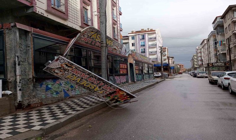 Afyonkarahisar’da saatteki hızı yer yer 25 kilometreye kadar çıkan fırtına hayatı olumsuz etkiledi. Şiddetli rüzgar bazı iş yerlerinin tabelalarını yerinde söktü.