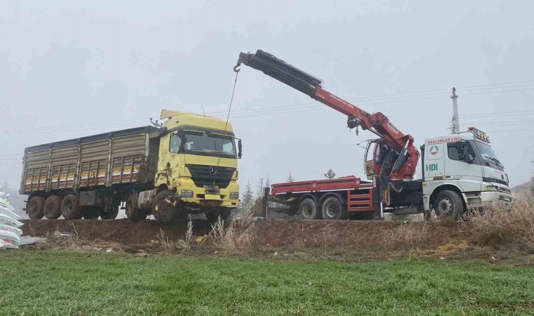 Afyonkarahisar’da gübre yüklü tırın şarampole devrilmesi sonucu meydana gelen kazada sürücü yaralandı.