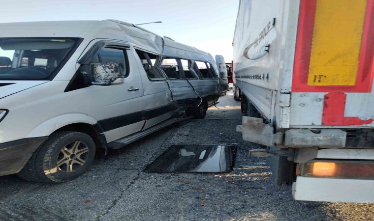 Afyonkarahisar’ın Sandıklı ilçesinde işçi servisi ile tırın çarpıştığı kazada ilk belirlemere göre 12 kişi yaralandı.