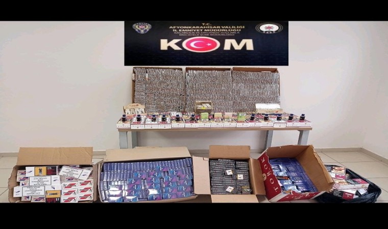 Afyonkarahisar İl Emniyet Müdürlüğü Kaçakçılık ve Organize Suçlarla Mücadele Şube Müdürlüğü yapılan çalışmalar kapsamında Bolvadin’nde bir işyerinde arama yaptı. Yapılan aramada; 820 paket sigara, 20 bin 800 adet boş makaron, 12 bin adet dolu makaron, 96 adet cinsel içerikli ürün, 77 adet elektronik sigara likiti, 4 adet elektronik sigara ele geçirdi. A.K., isimli şahsa adli işlem uygulandı.