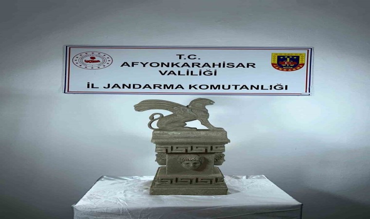 Afyonkarahisar’da İl Jandarma Komutanlığı ekipleri tarafından dört cephesinde insan başı figürü olan üst kısmında pars başlığı olduğu değerlendirilen 90 santimetre yüksekliğinde kanatlı heykel ele geçirdi. Olayla ilgili 3 kişi yakalandı.